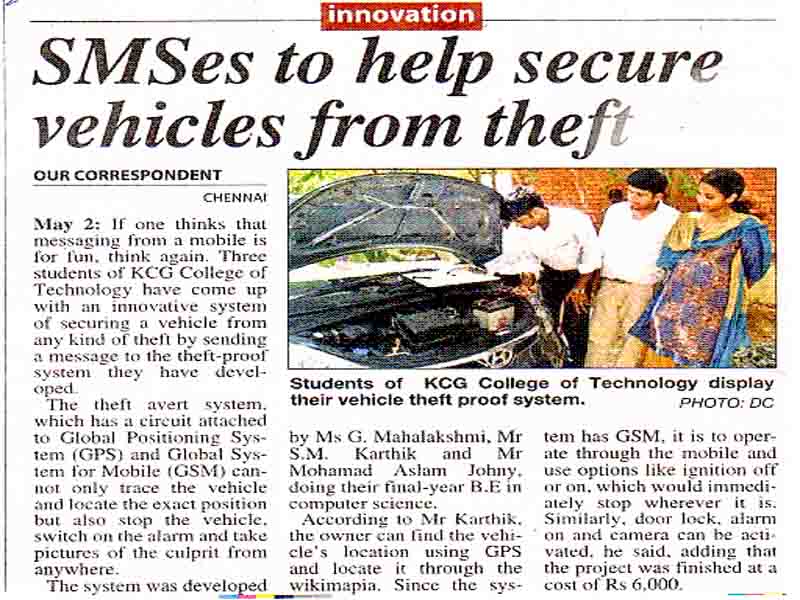 Awarded as Best project at K.C.G College of Engg & Technology, chennai. [ Apr 2009 ]